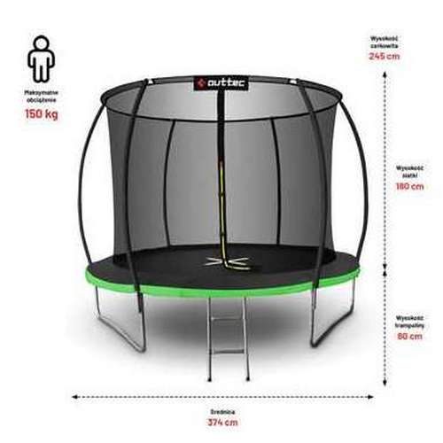 Батут 374 см черно-зеленый OUTTEC Pumpkin с внутренней сеткой