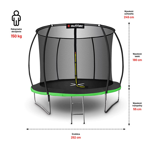 Батут OUTTEC Pumpkin с внутренней сеткой 252 см черно-зеленый ✅ хорошие характеристики