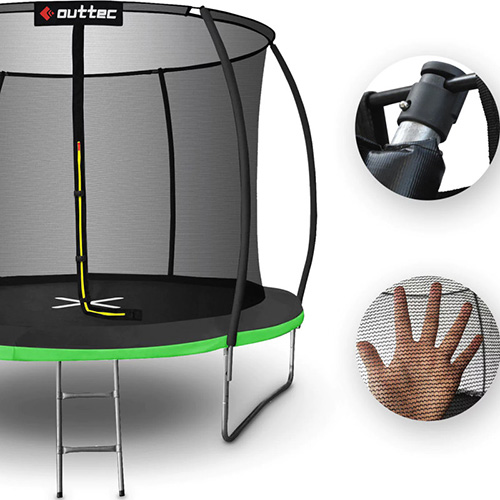 Еще одним преимуществом батута Pumpkin является высокая устойчивость к погодным условиям. Все пружины оцинкованы и защищены от коррозии. Поэтому батут можно оставлять в саду с ранней весны до поздней осени, не опасаясь, что его придется выбросить через один сезон. Батуты с внутренней сеткой более безопасны для детей, чем с наружной сеткой. В них рекомендуется прыгать близко к центру эстафеты.
