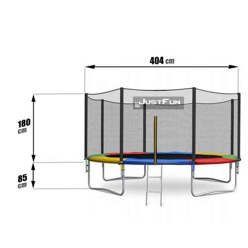 Садовый батут JustFun с наружной сеткой, диаметром 404см – 13фут.Батут Just Fun – это марка батутов, в котором опытные эксперты собрали все лучшее из разных батутов и изготовили данную модель, которая принесет максимальную защиту и удовлетворение Вашим детям. В данной модели каждая деталь батута тщательно и долго обдумывалась для обеспечения максимального комфорта и безопасности. В данной марке батутов используются квадратные трубы круга рамы, после многих тестов является наиболее прочным и выносливым каркасом.