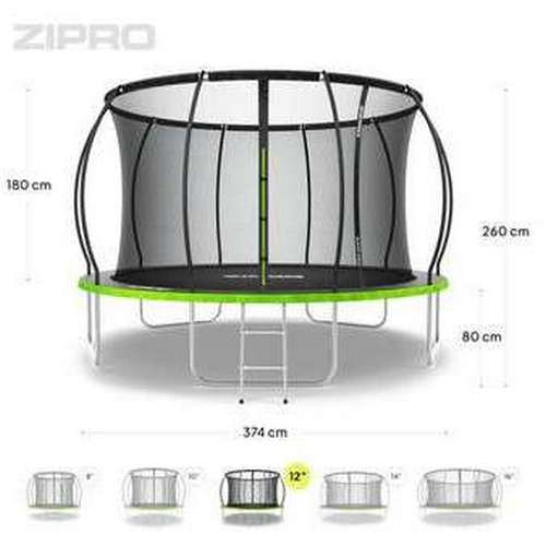Батут 374 см (12 фут.) Zipro Jump Pro Premium с внутренней сеткой черно-зеленый