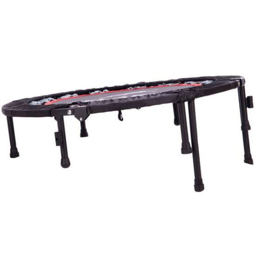 Батут небольшой, поэтому отлично впишется не только в спортзале, но и в домашних условиях – двор дома, комната с высокими потолками. Заниматься им могут и дети и взрослые, независимо от уровня физической подготовки. Чтобы быстрее освоиться с «шатким» полотном батута, сначала можно просто выполнять ходьбу на месте, держась за ручку.