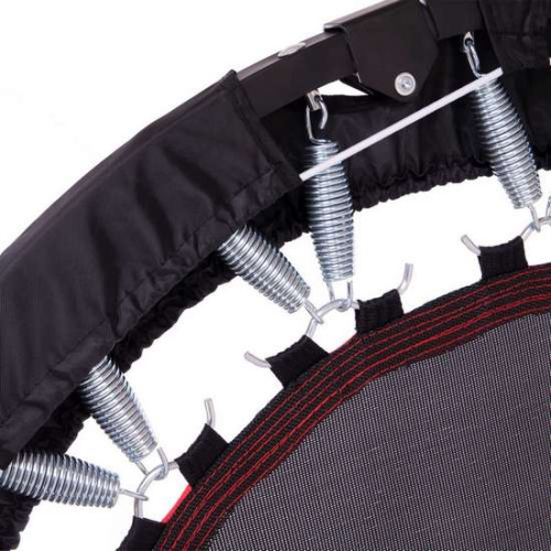 Батут представляет собой разборную каркасную конструкцию (кольцо со съемными ножками), изготовленную из металлических толстостенных труб, окрашенных порошковой краской. Кольцо служит рамой для прыжкового полотна, изготовленного из прочной синтетической ткани, устойчивой к деформации «на разрыв» и отличающейся повышенной износостойкости. Само полотно не эластично и амортизирует счет расположенных по периметру креплений, которыми служат упругие жгуты. Чтобы пользователю было проще сохранять равновесие, к каркасу батута крепится регулируемая по высоте ручка.