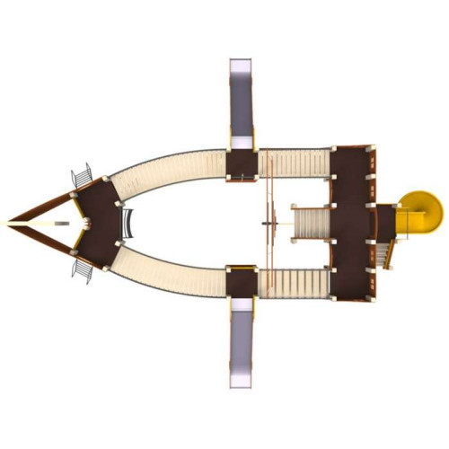 Детский комплекс, который из-за своих больших размеров может одновременно служить и полноценной детской площадкой для детей разного возраста.
