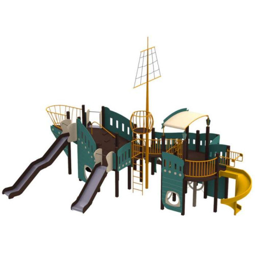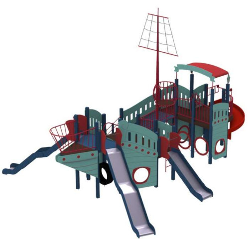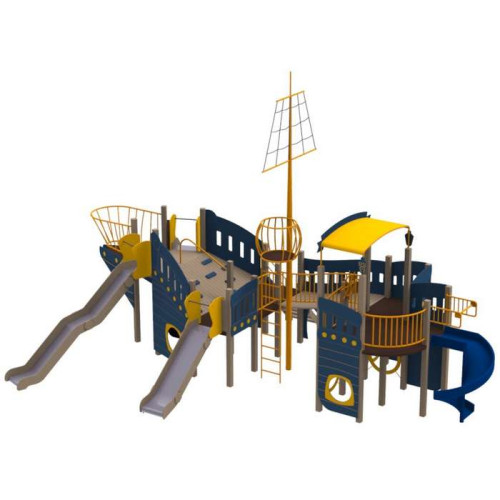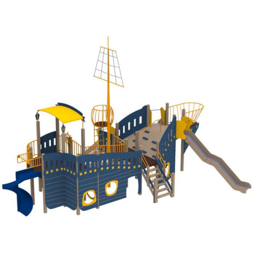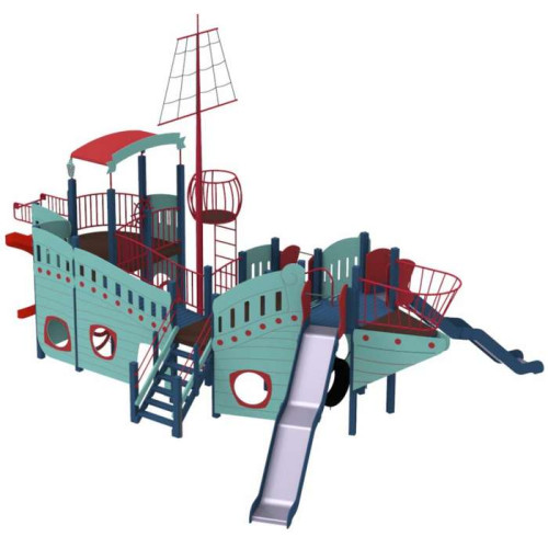 Детские площадки стилизованные под корабли - одни из самых любимых у детворы, ведь кто не хотел бы прочувствованное себя пиратом. Детский комплекс, благодаря большим размерам может одновременно функционировать как полноценный детская площадка для детей разного возраста.