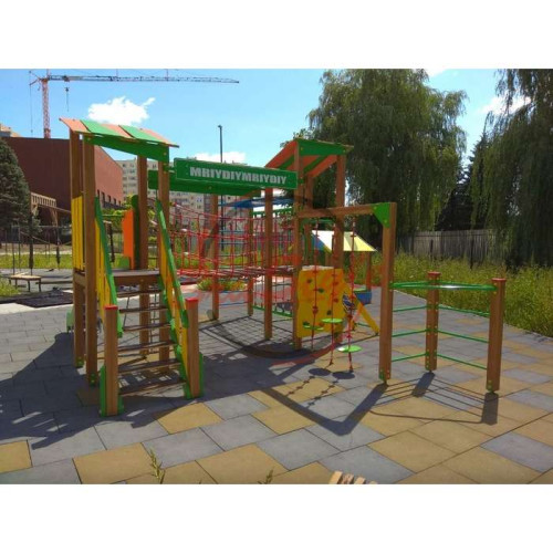 Детский спортивно-игровой комплекс “Веселый дворик” с шестом, рукоходом и канатом “БРАМА” изготовлен из качественного металла, натурального дерева и влагостойкой фанеры.