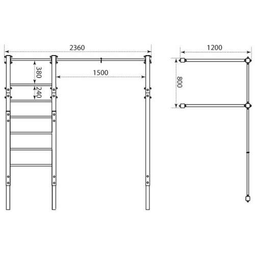 Наружная стационарная планка с перилами и вертикальной лестницей позволяет выполнять широкий спектр упражнений. Поручни, предназначенные для выполнения шведских отжиманий, идеально подходят для развития трицепсов и плеч.