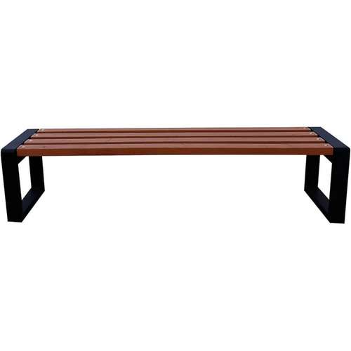 Скамейка имеет стальную опорную раму с порошковым покрытием и изготовлена из сосновой древесины: