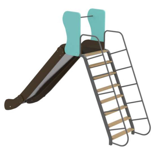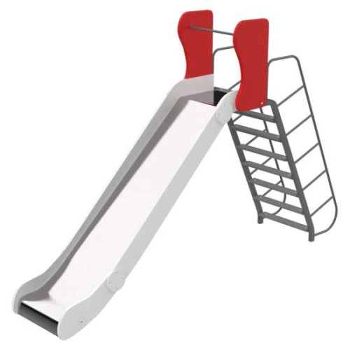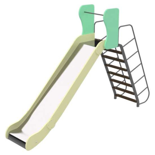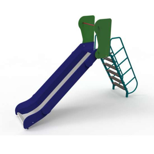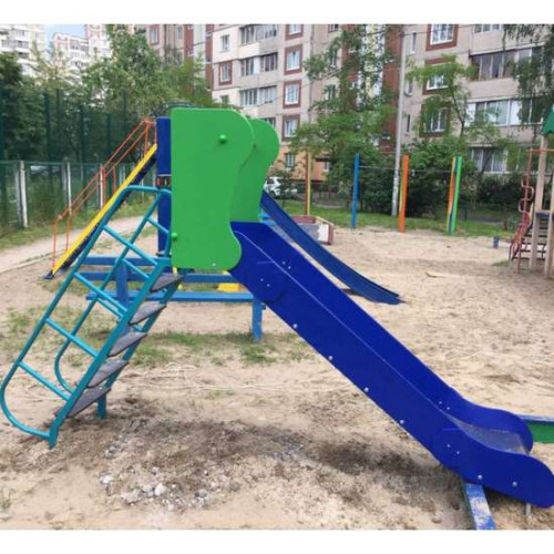 Горка может служить как дополнение к детской площадке или как отдельный игровой элемент. Классическая детская горка с металлическим спуском с защитными щитами, стремянкой с металлическими перилами.