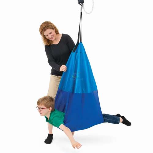 Гамак обеспечивает полную поддержку тела в положении изгиба, а также подходит для упражнений в положении сидя или лежа. Используется для вестибулярной стимуляции, релаксации и сенсорной интеграции. В комплекте предусмотрена предохранительная застежка для безопасного использования.
