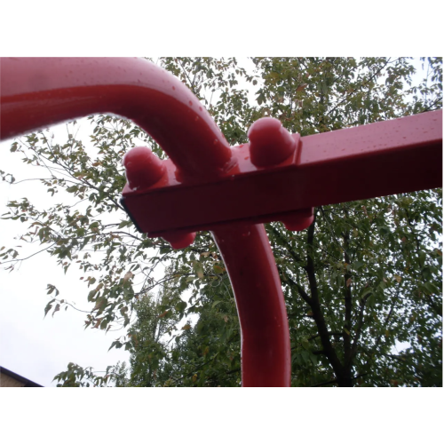 - Стойки качелей бетонируются в грунт с перемычкой.
