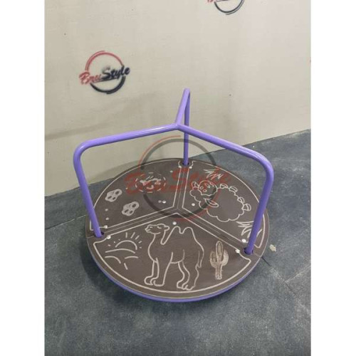 Карусель разделена на три зоны, соответственно одновременно ей могут пользоваться трое детей. Поручни и сама конструкция выполнена с метала.