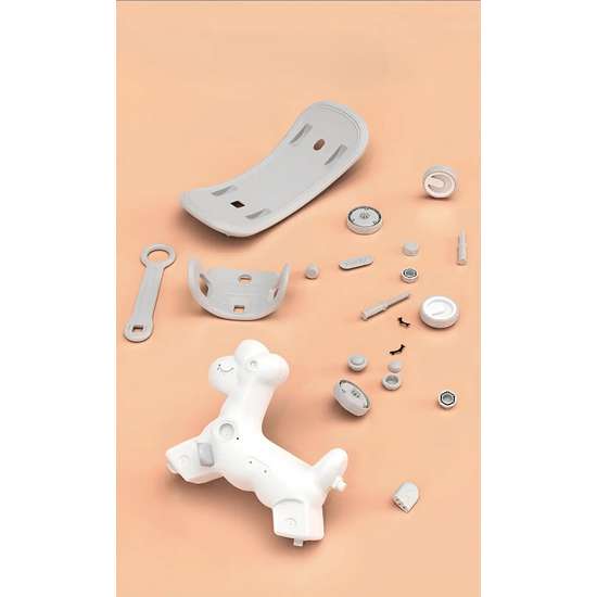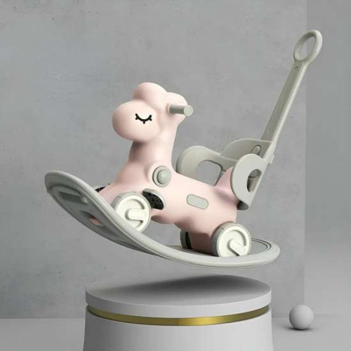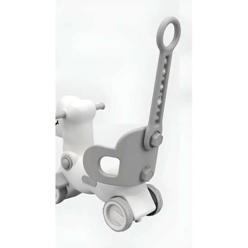 Качалка имеет нижнюю съемную часть, которая быстро превращает его в толокар, что дает возможность ребенку отталкиваться ножками и ездить самостоятельно.