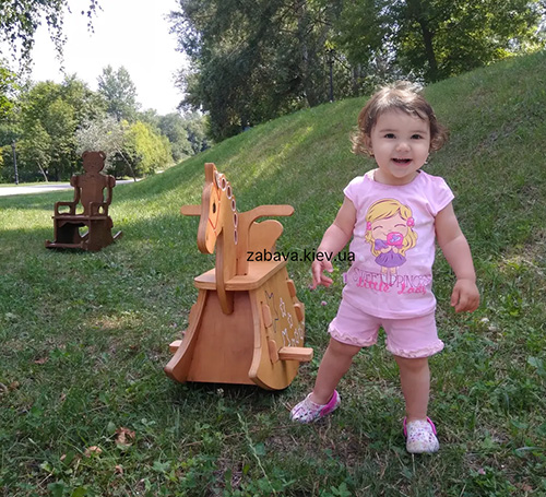 Низкий центр тяжести, массивная конструкция и толщина деталей 2,1 см делают «деревянную Лошадку» максимально безопасной – даже при большой амплитуде он не опрокинется. Всё продумано до деталей. Сидение удобное и широкое. Обработка материалов – идеальная.