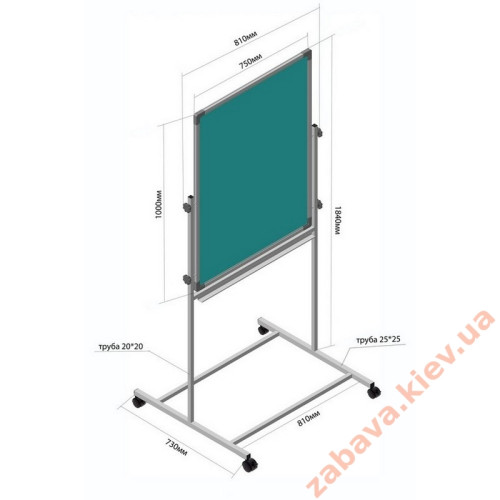 Каркас флипчарта изготовлен из алюминиевого профиля размером 20х25 мм.