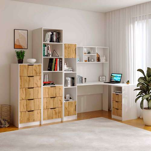 - Комод содержит 5 ящиков смонтированных на телескопических направляющих длиной 400 мм.