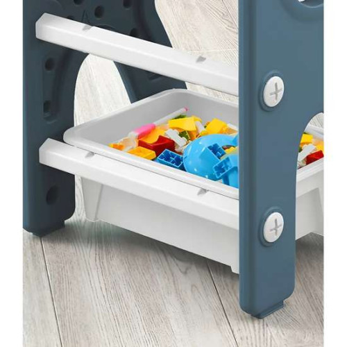 Под столешницей есть большое отделение, в котором можно хранить необходимые для игры аксессуары – карандаши, фломастеры, мел и другие любимые игрушки.