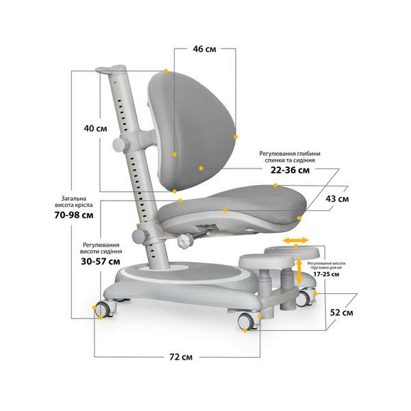 Детское растущее регулируемое ортопедическое кресло с подставкой для ног