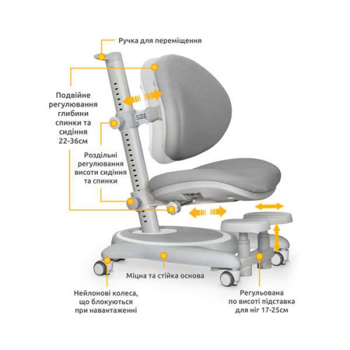 Детское кресло Mealux Ortoback Base с регулируемой спинкой и подставкой для ног ✅ хорошие характеристики