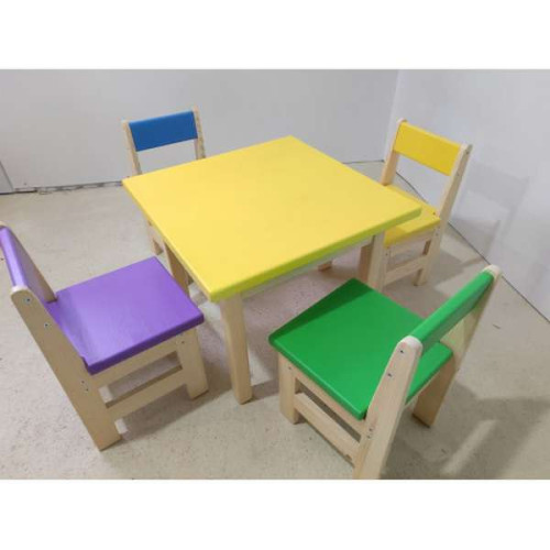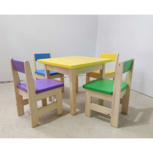 Детский набор из столика и стульчиков выполнен из натуральных, долговечных материалов, что значительно продлевает срок эксплуатации мебели, в отличие от ДСП или ДВП. Широкие, стойкие ножки, закругленные формы, отсутствие острых углов и опасных креплений позволяет использовать набор для самых маленьких деток.