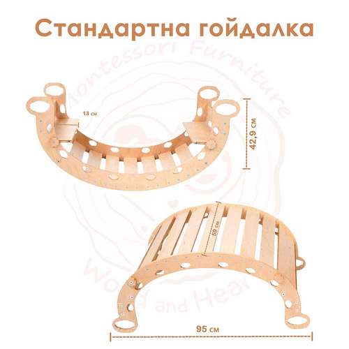 - Благодаря вневременному дизайну Монтессори балансир-арка идеально впишется в любой интерьер, придавая простору функциональности и эстетическому шарму.
