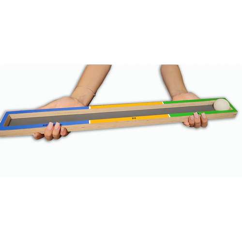 Ребенок дует на легкий элемент (шарик), проводя его по дорожке от уровня I → II → III.
