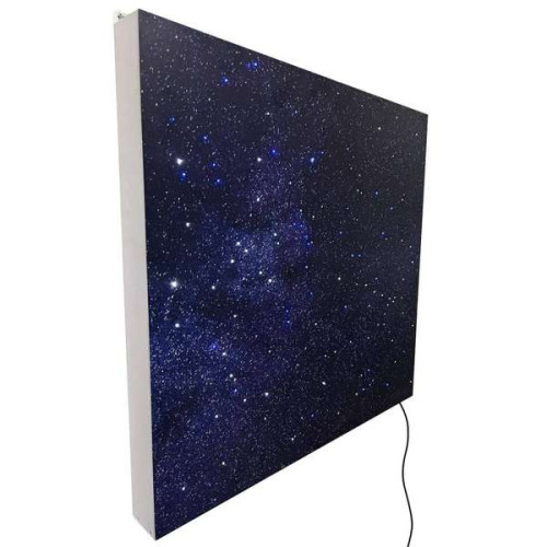 Настенная панель, имитирующая изображение звездного неба с россыпью звезд. Посмотрев на панель, сразу погружаешься в волшебный космический мир. Во время работы изделие подсвечивается различными цветовыми оттенками с помощью пульта дистанционного управления.