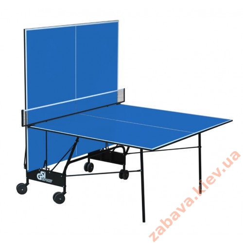 Теннисный стол для закрытых помещений. В качестве материала для игровой поверхности используется специально обработанная древесностружечная плита (ДСП) толщиной 16 мм. На ДСП нанесено специальное антибликовое пластиковое покрытие синего (маркировка Gk) либо зеленого (маркировка Gp) цвета.