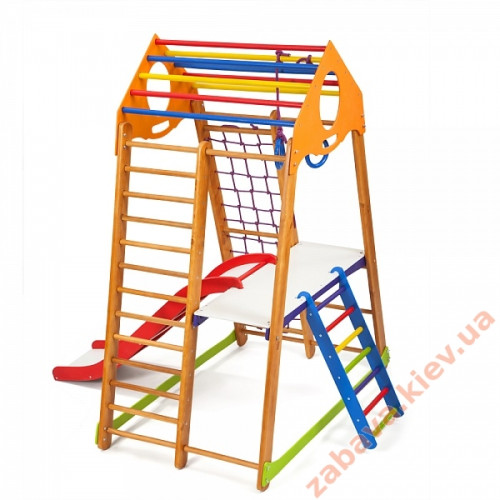 Все эти спортивные атрибуты способствуют развитию ловкости и силы малыша, его мелкой моторики, реакции и координации движений. А оригинальные игровые элементы помогут развить логику, математические способности и художественные навыки ребёнка.