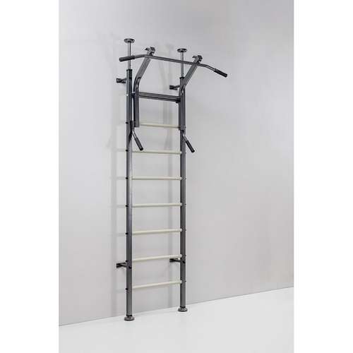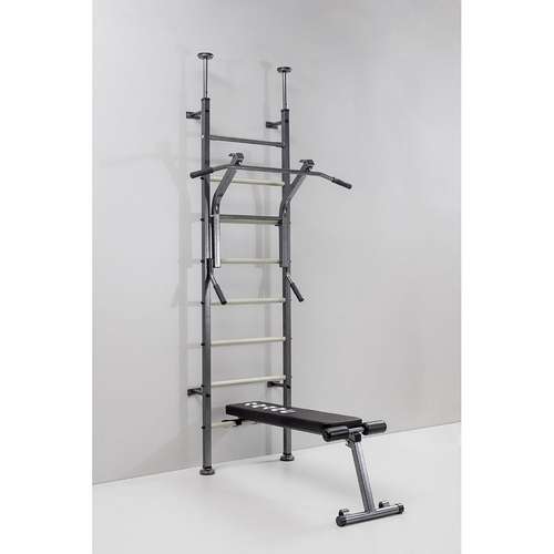 Скамейка оснащена складной ножкой и в сложенном состоянии полностью прилегает к гимнастической лестнице экономя пространство. Детали, сделанные из металла, покрыты порошковой краской приятного цвета, благодаря чему это сооружение украсит интерьер хоть какой комнаты. Установка занимает минимум вашего времени и усилий. Вам не нужно обладать особыми умениями.