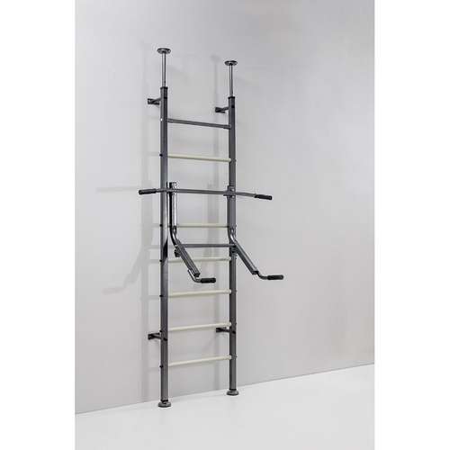 В комплекте есть четыре кронштейна, которые фиксируют тренажер к стене, а также несколько распорных штоков с анкерными болтами, чтобы можно было зафиксировать его между потолком и полом.