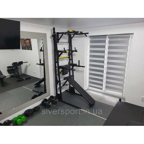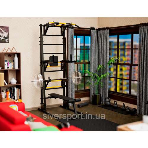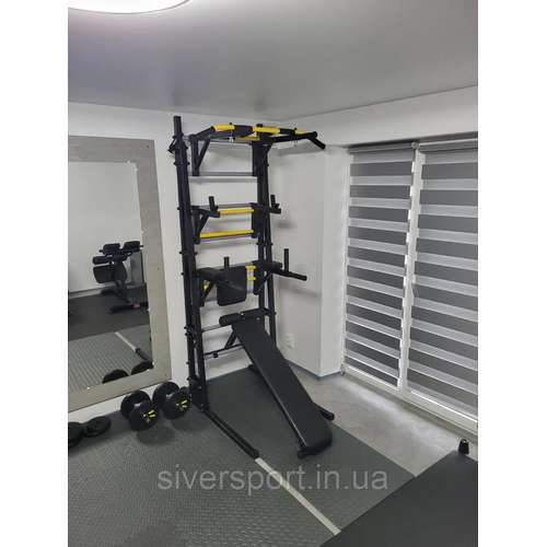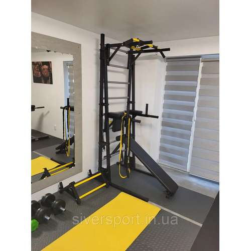 - Турник оборудован креплениями для боксерского мешка, петель TRX, эспандеров или детского навесного оборудования (гимнастические кольца, канат, веревочная лестница).