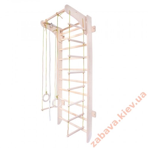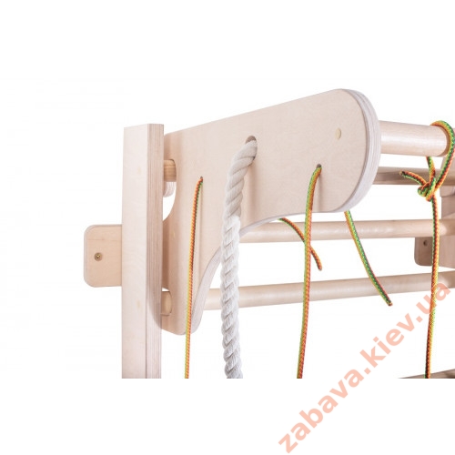 Шведская стенка с навесным турником и веревочным набором. Стойки шведской стенки выполнены из высококачественной, безопасной, разрешенной для производства детской мебели 30мм фанеры Сертификат CARB 2 (наивысший современный стандарт принятый Air Resources Board Калифорния, обязателен для штатов США). Перекладины шведской стенки из бука. Все это делает шведскую стенку очень прочной и долговечной, позволяет выдерживать большие нагрузки.