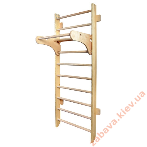 Шведская стенка с навесным турником, который можно переставить на любую высоту. Шведская стенка с усиленным навесным турником может использоваться как дома, так и спортивном зале, фитнесс-клубе, реабилитационных центрах.