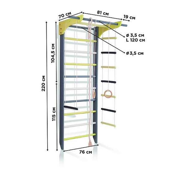 Шведская стенка деревянная 2-Lux 1-220 графитово-белая с навесным оборудованием ✅ хорошие характеристики