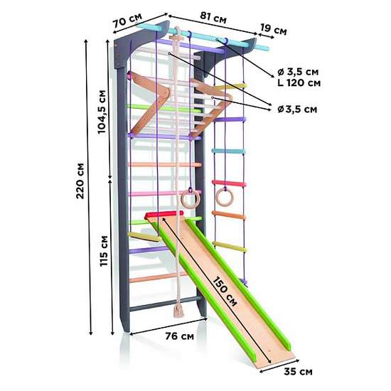 Спортивный уголок «12-Lux 3-220» помогает развить координацию движений и выработать отличную осанку, укрепить все основные группы мышц и улучшить кровоснабжение. А ещё он дарит детям множество идей для интересных игр, хорошее настроение и заряд позитивной энергии!
