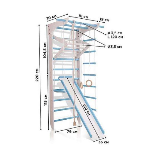 Шведская стенка с дерева 3-Lux 3-220 бело-голубая с доской для пресса ✅ хорошие характеристики