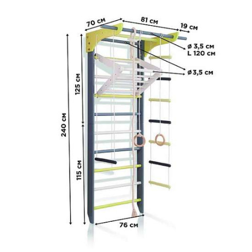 Выполненный на основе классической шведской стенки, этот многофункциональный современный спортивный тренажёр поможет вашему ребёнку стать сильным и ловким, гибким и выносливым, развить координацию движений и выработать отличную осанку.Размеры: