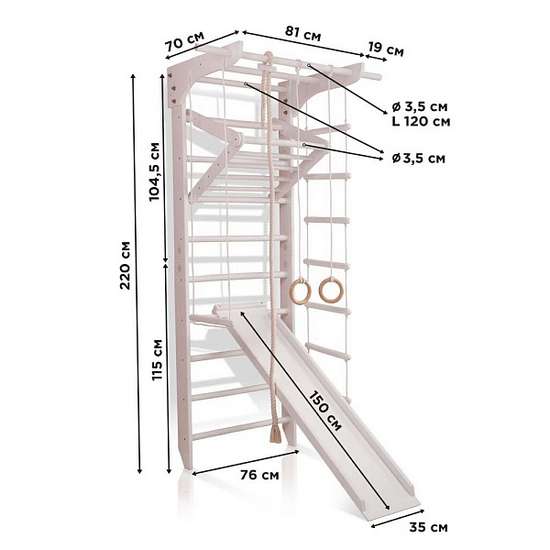 Производитель настоятельно рекомендует присматривать за детьми во время игры и выполнения физических упражнений, и обязательно доукомплектовать шведскую стенку гимнастическими матами.