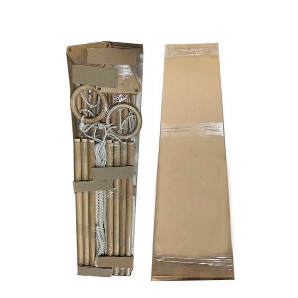 Применение перекладин из жестких пород дерева (ясень, бук, граб) позволяет выдерживать нагрузку до 120 кг. Размещение элементов веревочного набора возможно как с правой, так и с левой стороны.