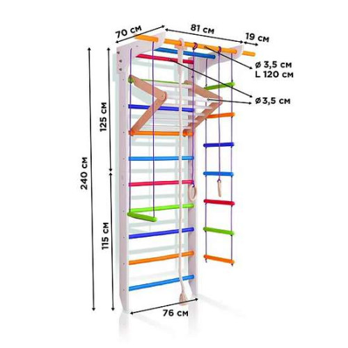 Выполненный на основе классической шведской стенки, этот многофункциональный современный спортивный тренажёр поможет вашему ребёнку стать сильным и ловким, гибким и выносливым, развить координацию движений и выработать отличную осанку.Размеры:
