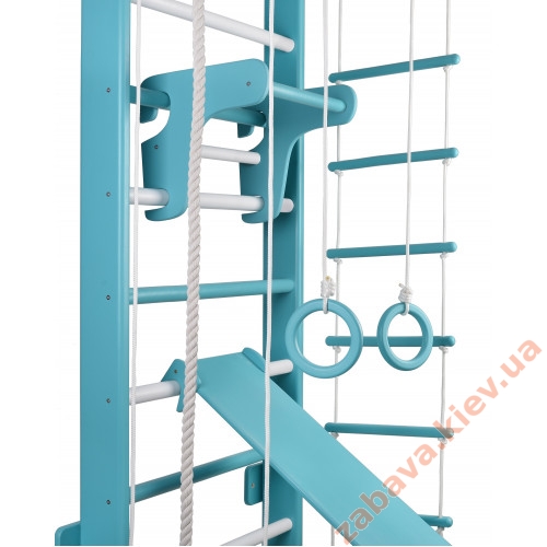 Дополнительные аксессуары: качелька-трапеция, веревочная лесенка, гимнастические кольца, канат, навесной детский турничок, доска для пресса и спины.