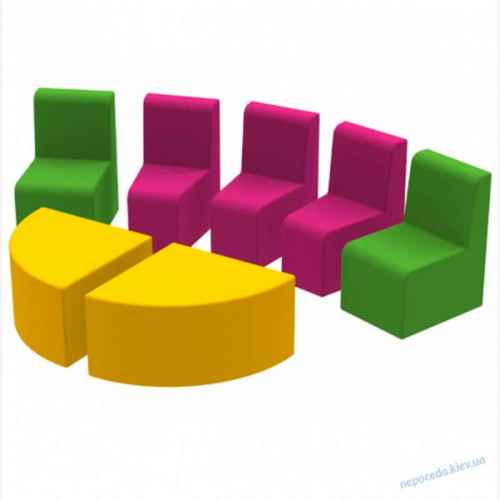 состоит из 7-ми модулей (5 стульев, 2 столика-пуфика).