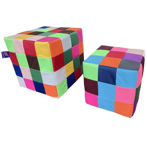 Представляет собой мягкое и удобное кресло, которое может использоваться ребенком для игр или отдыха. На нем удобно читать книгу, просматривать телевизор или проектор, слушать музыку или сказки близких, играть в приставку и даже кушать. Особенно привлекает разноцветная гамма пуфика в виде мозайки.Размер: