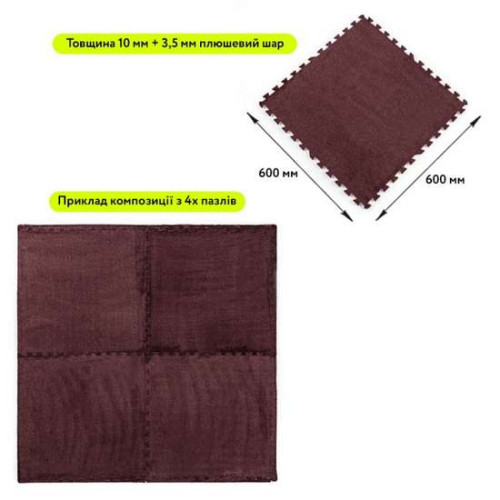- Толщина пазла - основной слой – 10 мм + ворс – 3,5 мм