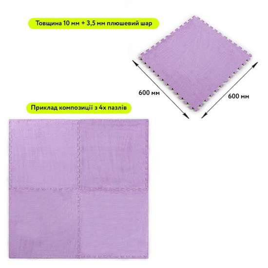 Плюшевый пол-пазл мягкий 60*60*1cm (D) фиолетовый ✅ хорошие характеристики