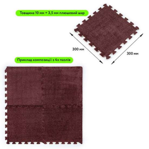 Пол-пазл мягкий плюшевый 30*30*1cm (D) коричневый ✅ хорошие характеристики