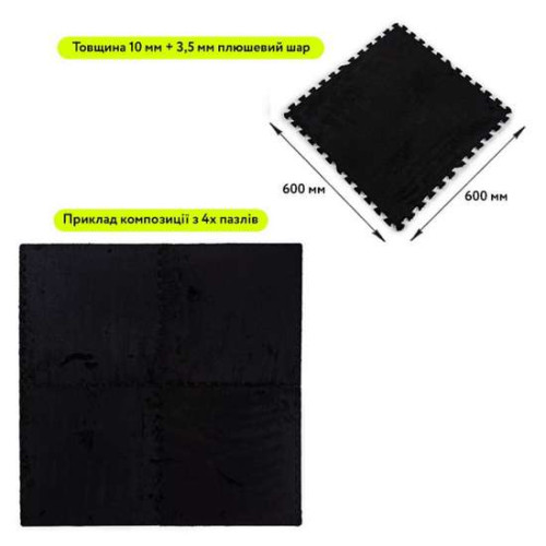 - Толщина пазла - основной слой – 10 мм + ворс – 3,5 мм