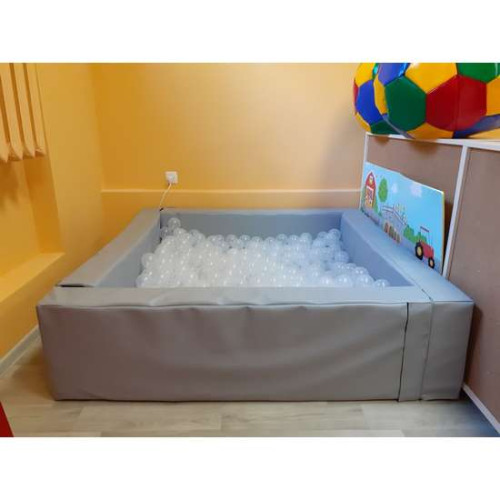 Предназначен для насыпных материалов (цветные и прозрачные пластиковые шарики.). Их благоприятное сенсорное воздействие на психологическое, эмоциональное и физическое развитие детей доказано не одним поколением педиатров и невропатологов. Наполнитель сухого бассейна оказывает массажное действие, яркие детали способствуют изучению цветов и форм. Часто используется в реабилитационной работе детей с отставанием в развитии или неврологическими патологиями. Светодиодные лампы, вмонтированные по периметру изделия оказывают благоприятное воздействие светотерапией. Поэтому изделие закупается в том числе и для инклюзивных ресурсных центров.