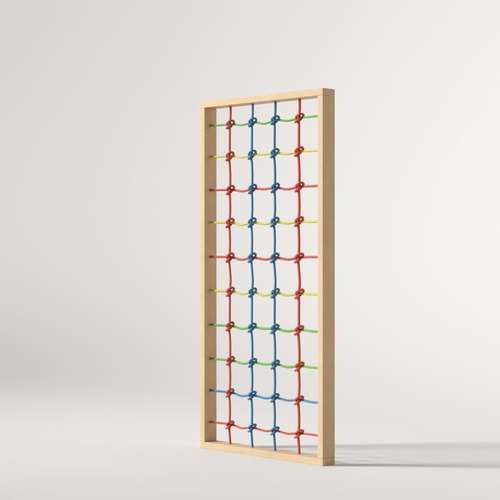 Крепкая деревянная рама из натурального бука, в которую встроена веревка с узловым плетением. Очаги оптимального размера для детских рук и ног, что делает занятие комфортными и безопасными.